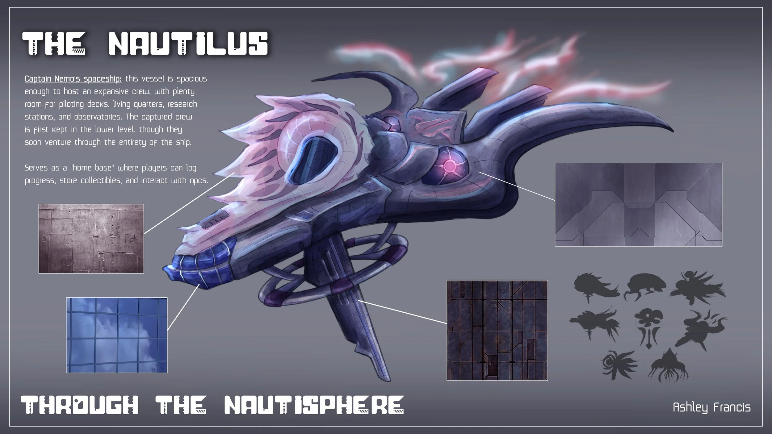 Based on Twenty Thousand Leagues Under The Sea by Jules Verne, Through The Nautisphere is a sci-fi, semi-open world game concept.